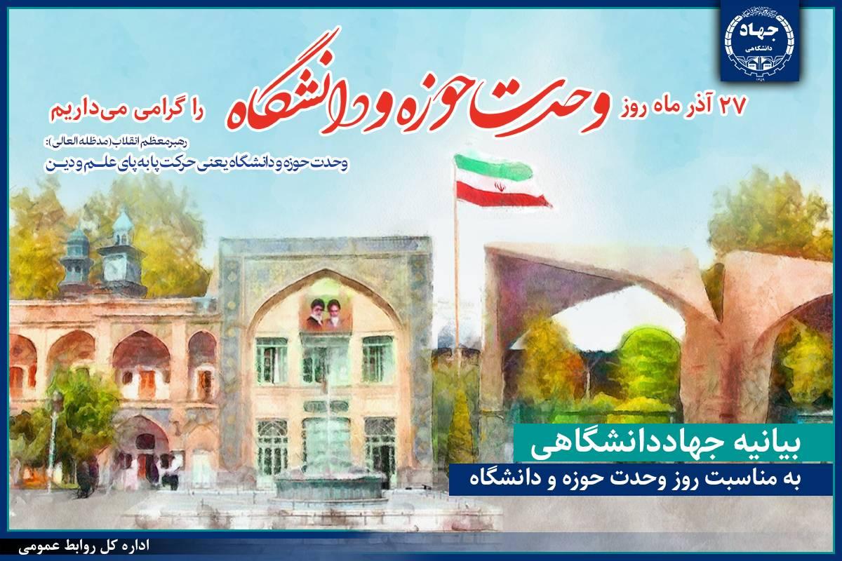 جهاددانشگاهی در آستانه ۲۷ آذرماه، روز وحدت حوزه و دانشگاه، با صدور بیانیه ای، اعلام کرد: این نهاد باور دارد که وحدت حوزه و دانشگاه، صرفاً یک شعار یا مناسبت تقویمی نیست، بلکه یک مسیر مستمر برای تولید دانش بومی، تقویت هویت ملی ـ اسلامی و پاسخ‌گویی علمی و فرهنگی به نیازهای جامعه امروز است. این وحدت می‌تواند زمینه‌ساز پیشرفت متوازن، مقابله هوشمندانه با تهاجم فرهنگی و تحقق گام‌به‌گام تمدن نوین اسلامی باشد.