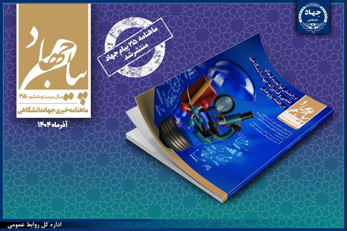 ماهنامه «پیام جهاد» شماره ۲۱۵ منتشر شد / درخشش پژوهشگران و فناوران جهاددانشگاهی در نمایشگاه هفته پژوهش