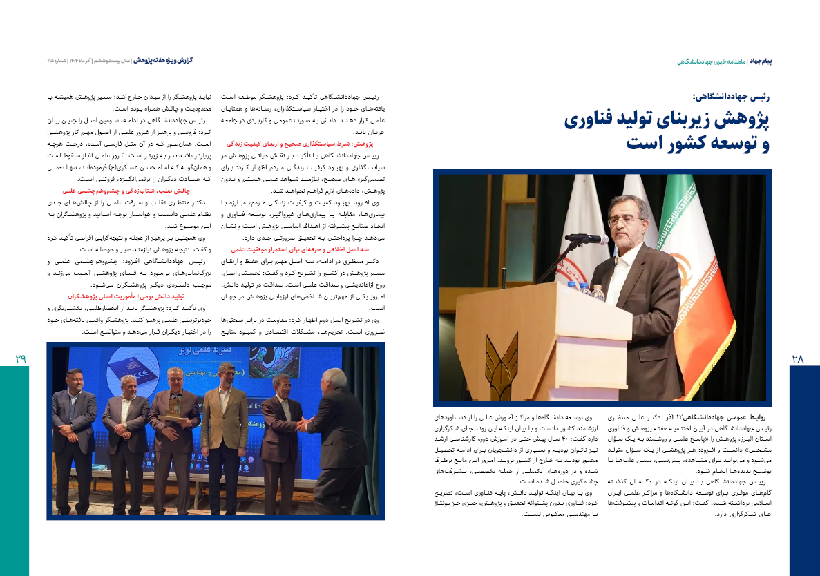 ✔️ برترین‌های پژوهش و فناوری جهاددانشگاهی تجلیل شدند